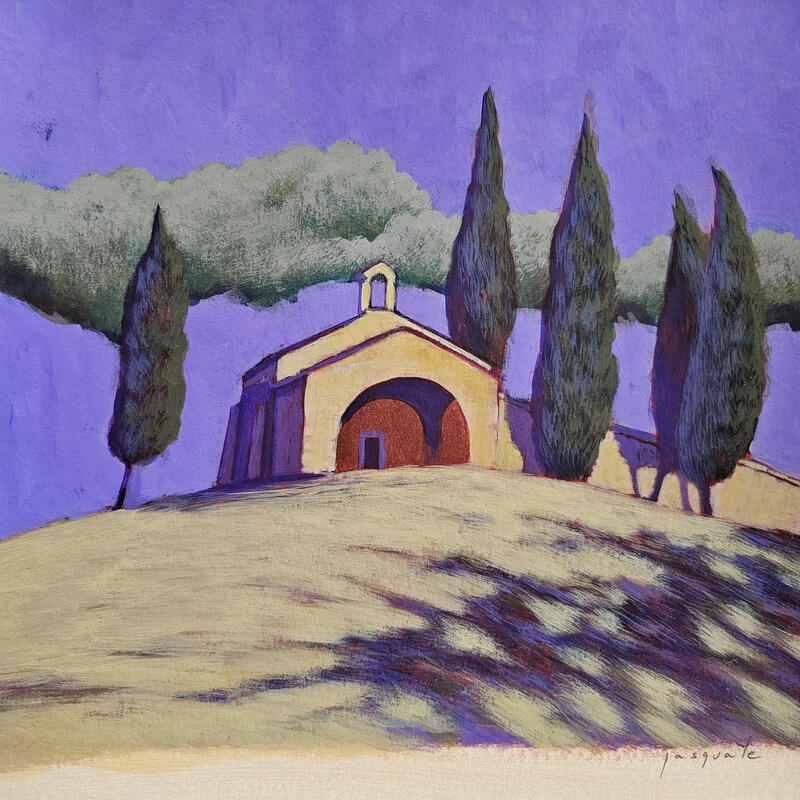 This unique and original contemporary artwork "Chapelle Saint Sixte" on the subjects of Architecture, Nature, Landscapes has been created by the contemporary artist Pasquale.