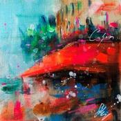 This unique and original contemporary artwork "Café rouge " on the subjects of Architecture, Landscapes, Urban has been created by the contemporary artist Solveiga.