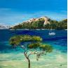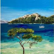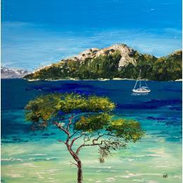 This unique and original contemporary artwork "Beauté des îles d'or" on the subject of Landscapes has been created by the contemporary artist Rey Ewa.