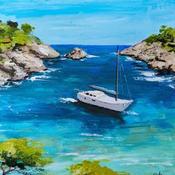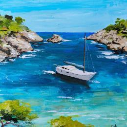 This unique and original contemporary artwork "Le repos du voilier" on the subject of Landscapes has been created by the contemporary artist Rey Ewa.