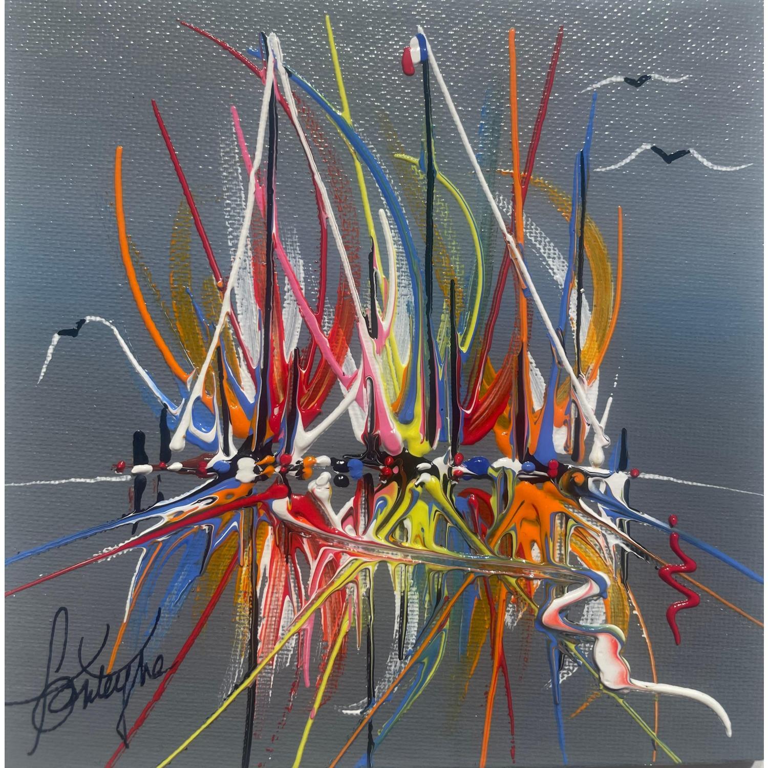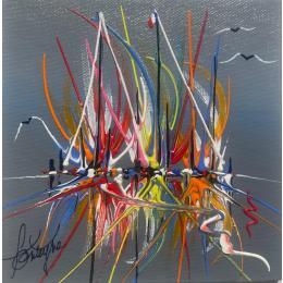 This unique and original contemporary artwork "L'Arrivée" on the subjects of Marine, Minimalist has been created by the contemporary artist Fonteyne David.