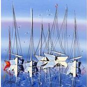 This unique and original contemporary artwork "Les voiliers de ton cœur" on the subject of Marine has been created by the contemporary artist Fonteyne David.