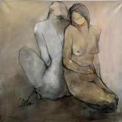 This unique and original contemporary artwork "Reine du jour" on the subject of Nude has been created by the contemporary artist Chaperon Martine.