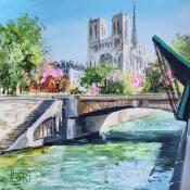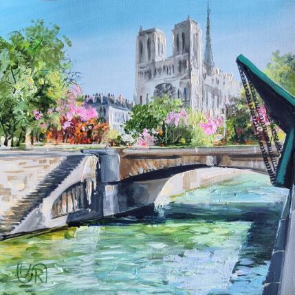 Painting River and city by Rasa | Painting Figurative Urban Acrylic