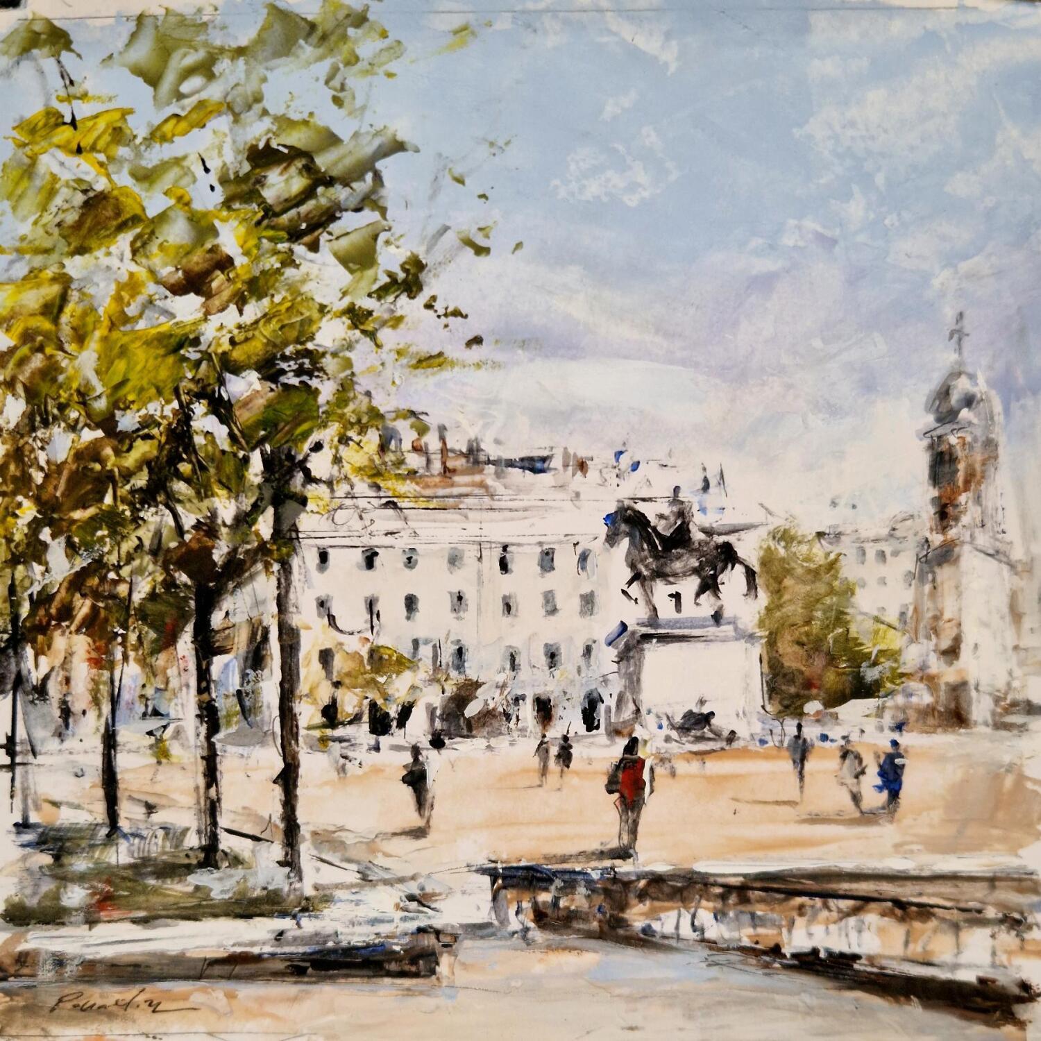 This unique and original contemporary artwork "la grande place de lyon" on the subject of Landscapes has been created by the contemporary artist Poumelin Richard.