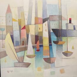 Painting Le paquebot AN 156 by Burgi Roger | Painting Figurative Acrylic