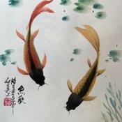 This unique and original contemporary artwork "Happy fishes" on the subject of Animals has been created by the contemporary artist Yu Huan Huan.