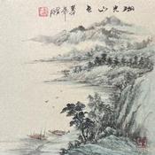 Painting Lake sight   by Yu Huan Huan | Painting Figurative Landscapes Black & White Ink