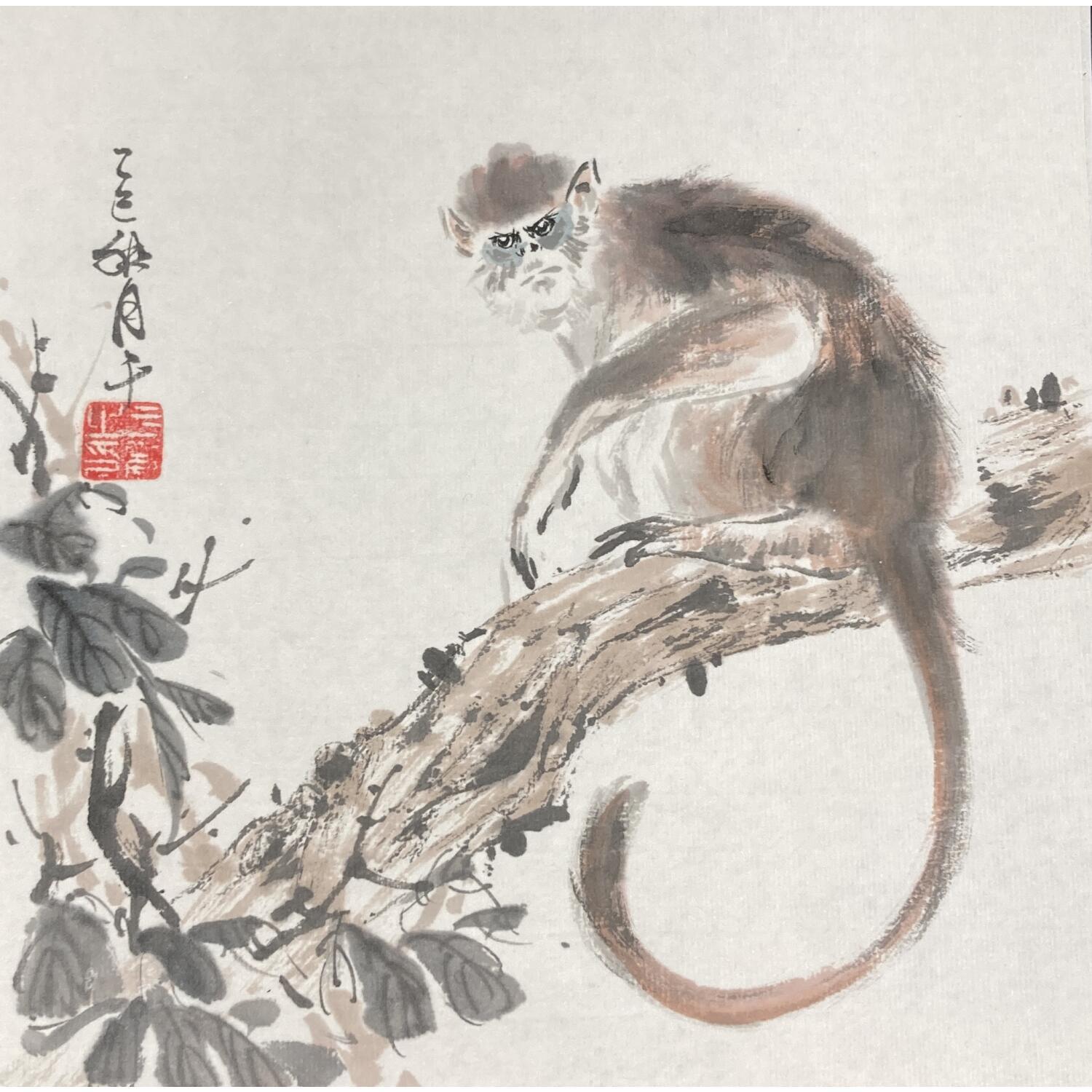 MonkeyPainting Monkey by Yu Huan Huan | Painting Figurative Ink