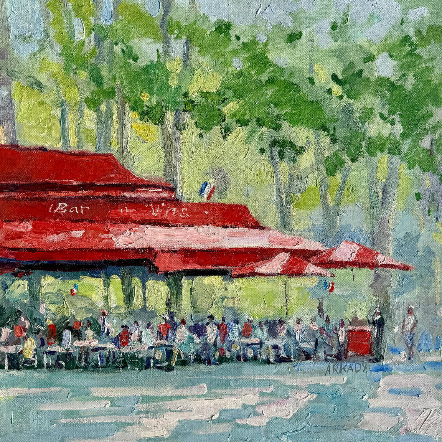Having always been attracted by creation, Arkady began producing his first self-taught works from 2009 onwards. In parallel, the young painter carried out many work placements with confirmed artists in France and Moldova, with the intention of learning the rudiments of this discipline and perfecting his technique. He would also become the assistant to the painter Grigore Dontu (born in 1965) for four years, during which time he would help create works and sell them at Provencal markets. Wanting to confirm his knowledge and savoir-faire, Arkady enrolled at the Sorbonne University in Paris in September 2014 to follow a dual course dedicated to art and art science. Always armed with his sketchbook, he enjoys walking about town and drawing his sketches: these first drafts would then become a guiding principle for the production of his future canvases.