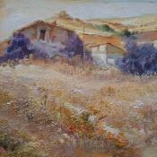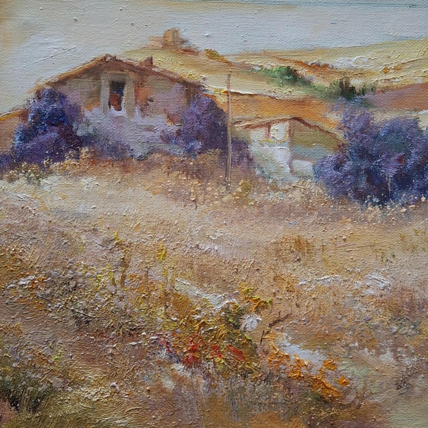 This unique and original contemporary artwork "Casas en el cerro" on the subject of Landscapes has been created by the contemporary artist Cabello Ruiz Jose.