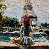 Painting Her Paris Dream by Xanlar | Painting Figurative Landscapes Urban Life style Oil