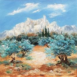 This unique and original contemporary artwork "Les Baux-de-Provence" on the subject of Landscapes has been created by the contemporary artist Lyn.