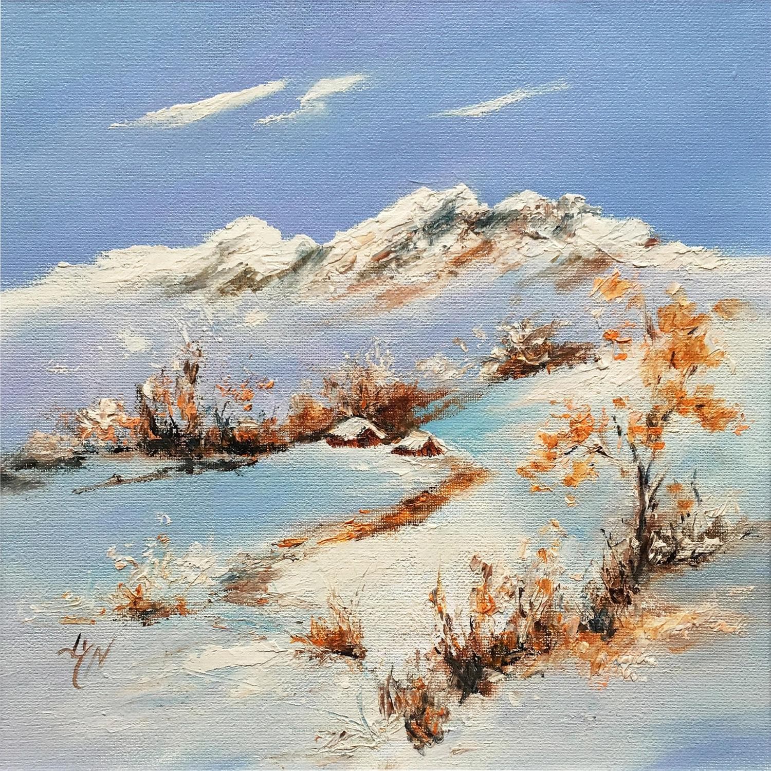 This unique and original contemporary artwork "Paysage alpin" on the subject of Landscapes has been created by the contemporary artist Lyn.