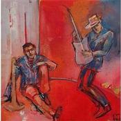 The artist used Oil, Acrylic media on Canvas to create this Figurative, Small size painting.