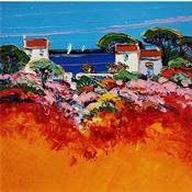 This unique and original contemporary artwork "Les terrasses avec vue sur mer" on the subjects of Marine, Landscapes has been created by the contemporary artist Corbière Liisa.