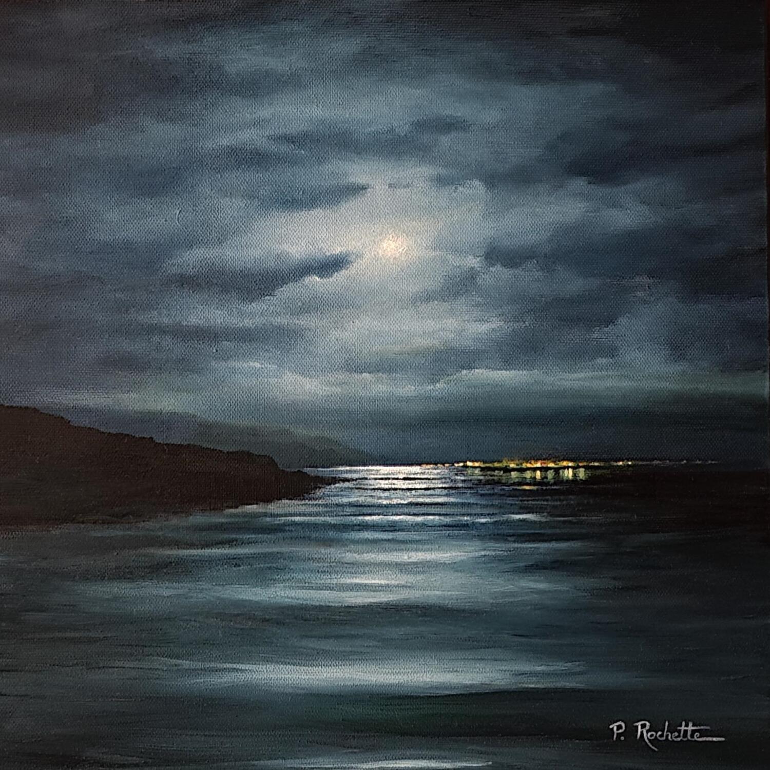 This unique and original contemporary artwork "Lueurs nocturnes " on the subject of Marine has been created by the contemporary artist Rochette Patrice.