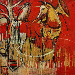 The artist used Oil medium on Canvas to create this Figurative, Small size painting.
