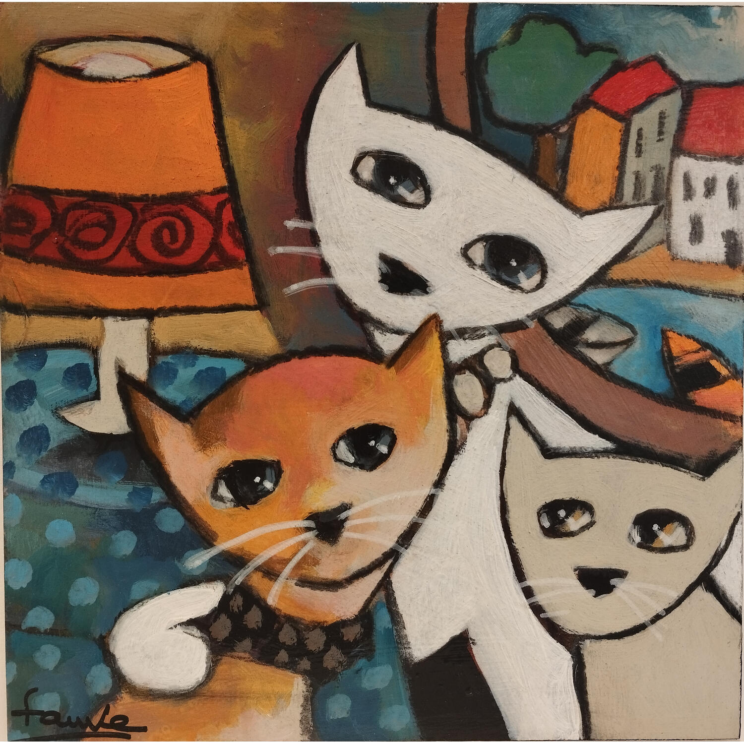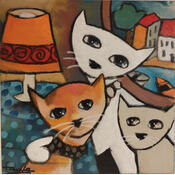 This unique and original contemporary artwork "Mes chats" on the subject of Life style has been created by the contemporary artist Fauve.