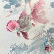 Painting Happy fish by Yu Huan Huan | Painting Figurative Animals Watercolor Ink