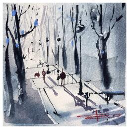 The artist used Watercolor, Ink media on Paper to create this Figurative, Small size painting.