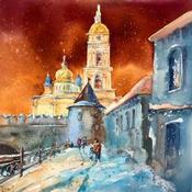 This unique and original contemporary artwork "Snow Tobolsk" on the subjects of Architecture, Landscapes, Urban has been created by the contemporary artist Volynskih Mariya .