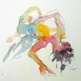 Painting Marine une main dans le dos  by Brunel Sébastien | Painting Figurative Nude Watercolor