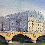This unique and original contemporary artwork "Pont Saint MIchel " on the subjects of Architecture, Urban has been created by the contemporary artist Bailly Kévin .