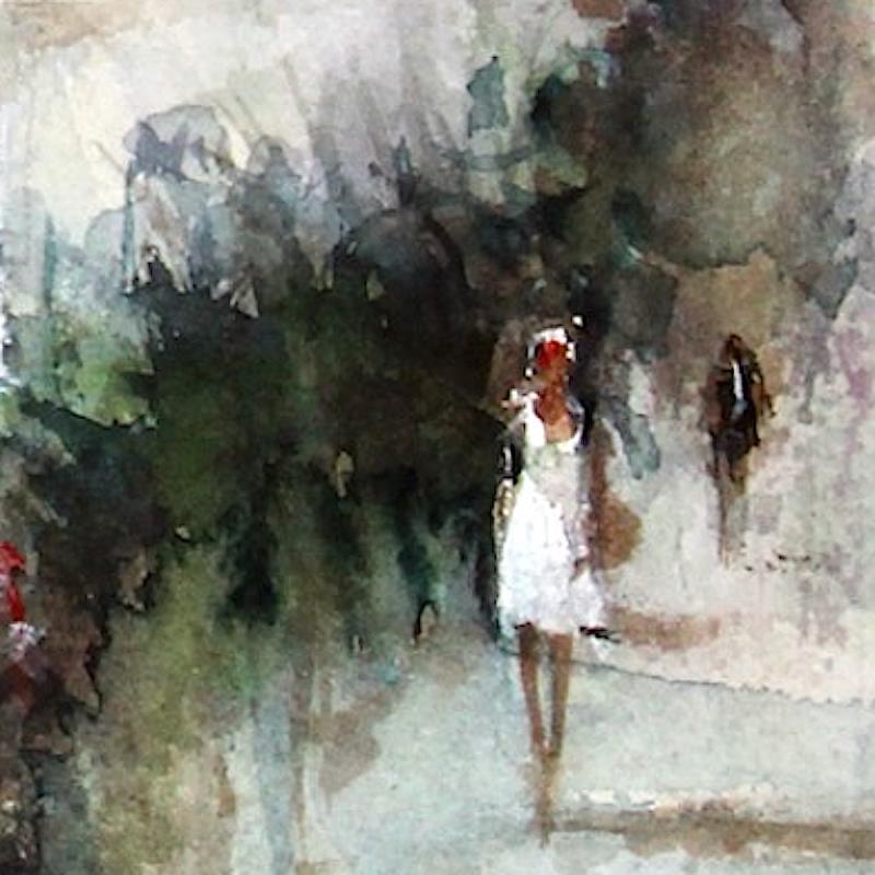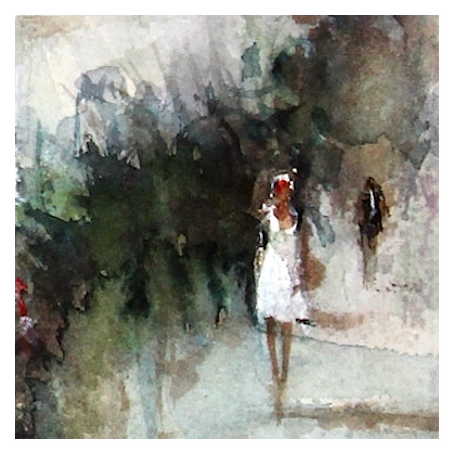 The artist used Watercolor medium on Paper to create this Figurative, Small size painting.