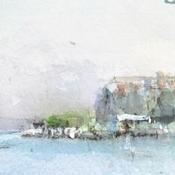 Le lac de CômePainting Le lac de Côme by Gutierrez | Painting Figurative Landscapes Urban Watercolor