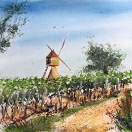 This unique and original contemporary artwork "Anjou moulin du vin et du vent" on the subject of Urban has been created by the contemporary artist Hoffmann Elisabeth.