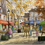 This unique and original contemporary artwork "Paris la place du Tertre à Montmartre" on the subject of Urban has been created by the contemporary artist Decoudun Jean charles.