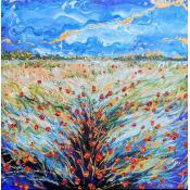 This unique and original contemporary artwork "Champ de blé doré et coquelicots" has been created by the contemporary artist Amblard Florence.