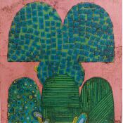 The artist used Gluing medium to create this special, Small size painting.