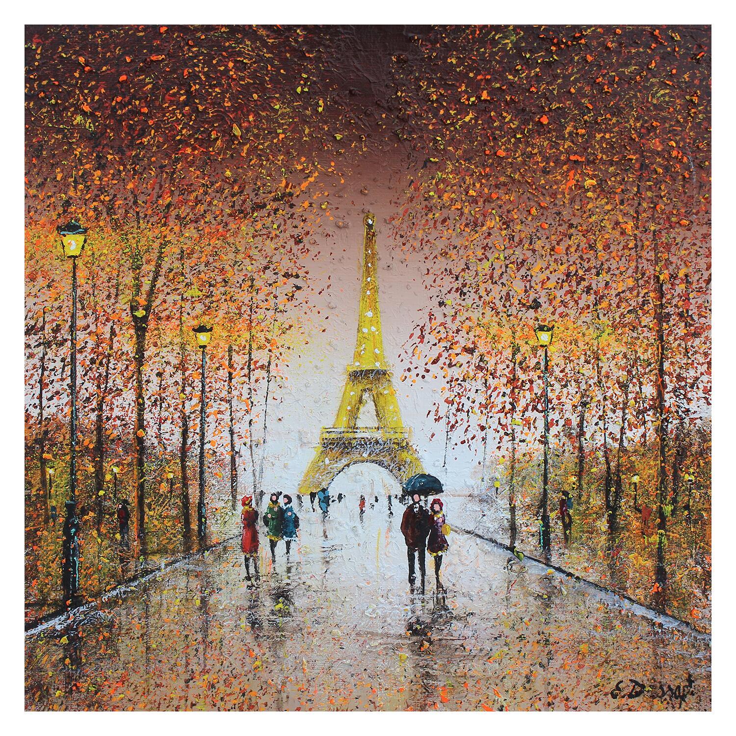 This unique and original contemporary artwork "Romantisme d'automne à Paris" has been created by the contemporary artist Dessapt Elika.