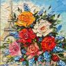 "Vibrant Parisian Bouquet" by Diana Pigni is a striking 13 x 13 cm oil painting that merges the romance of Paris with the beauty of blooming flowers. Lush, colourful blossoms dominate the foreground, while the Eiffel Tower subtly rises in the background, enveloped in a soft, dreamy sky. Diana’s skilful use of impasto technique adds rich texture and depth, bringing the flowers to life and evoking the essence of Paris’s charm and vibrancy. This captivating piece invites viewers to experience a harmonious blend of nature and iconic architecture.