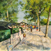 This unique and original contemporary artwork "Ile Saint-Louis, Les bouquinistes " on the subject of Landscapes has been created by the contemporary artist Sannier Daniel.