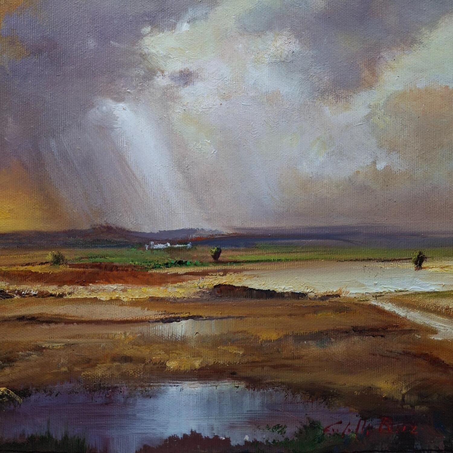 This unique and original contemporary artwork "Paisaje con charca" on the subject of Landscapes has been created by the contemporary artist Cabello Ruiz Jose.