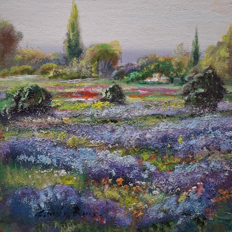 The artist used Oil medium on Canvas to create this Impressionism, Small size painting.