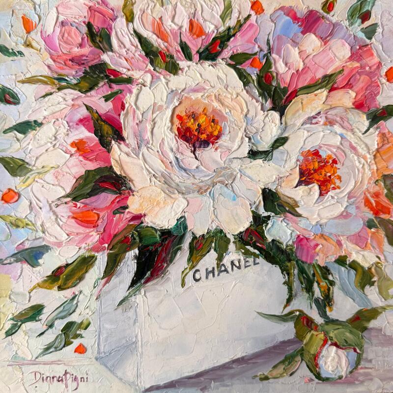 This floral peony painting on 25 x 25 cm canvas makes a stunning statement piece for your living room, bedroom, or office. The elegant peonies, painted in thick impasto textures, bring joy, positivity, and a sense of natural beauty to any space. Perfect as a gift for art lovers, peony enthusiasts, or anyone who appreciates unique personalized artwork.