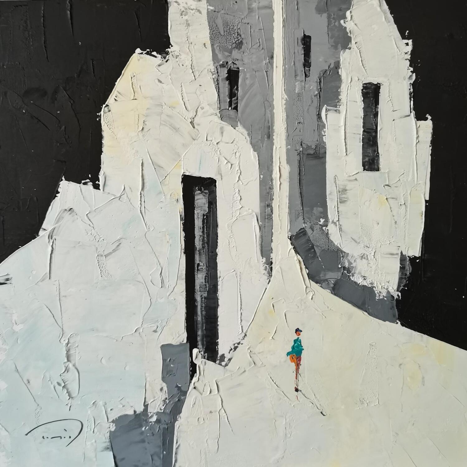 This unique and original contemporary artwork "La camisa verde" on the subjects of Urban, Black & White, Life style has been created by the contemporary artist Tomàs.