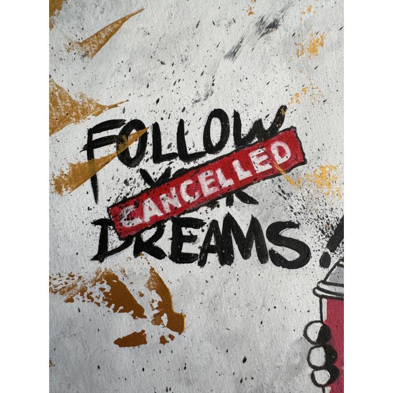 The artist used Acrylic, Gluing media on Paper to create this Pop-art, Small size painting.