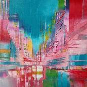 At the age of 12, during a visit to the Tate Gallery in London, Emmanuelle encountered the first paintings that made her want to paint. She decided to attend a fine arts workshop outside her regular school curriculum, and after receiving a high school diploma in the arts, she joined the School of Fine Arts. She studied drawing and preferred figurative painting initially. The light of the Brittany coast, always changing and capricious, was a source of inspiration and desires for her. After painting from nature and photos, she decided to give free rein to her imagination and to trust the colours as her only medium, and thus she moved definitively to abstraction. On a trip to Russia she met many passionate artists (musicians, actors, filmmakers), and on returning to France, she became a schoolteacher. The overwhelming artistic imagination of children taught her much and this experience helped her to affirm her own colours as her 'joie de vivre'. She then devoted herself entirely to painting.