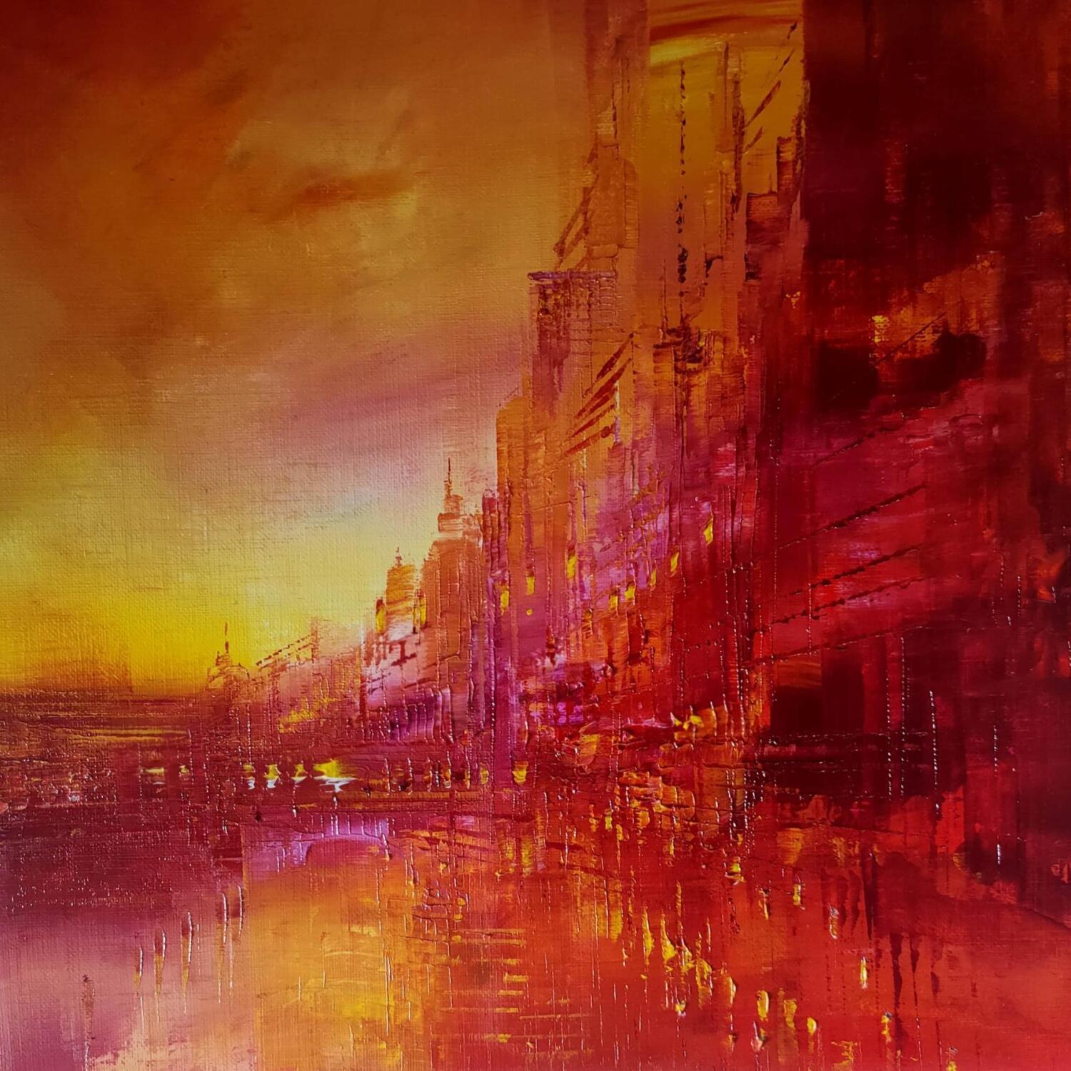 Painting Ville de feu by Levesque Emmanuelle | Painting Oil