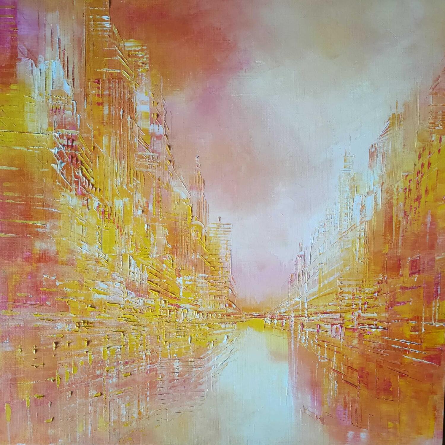 Painting Ville mandarine by Levesque Emmanuelle | Painting Oil