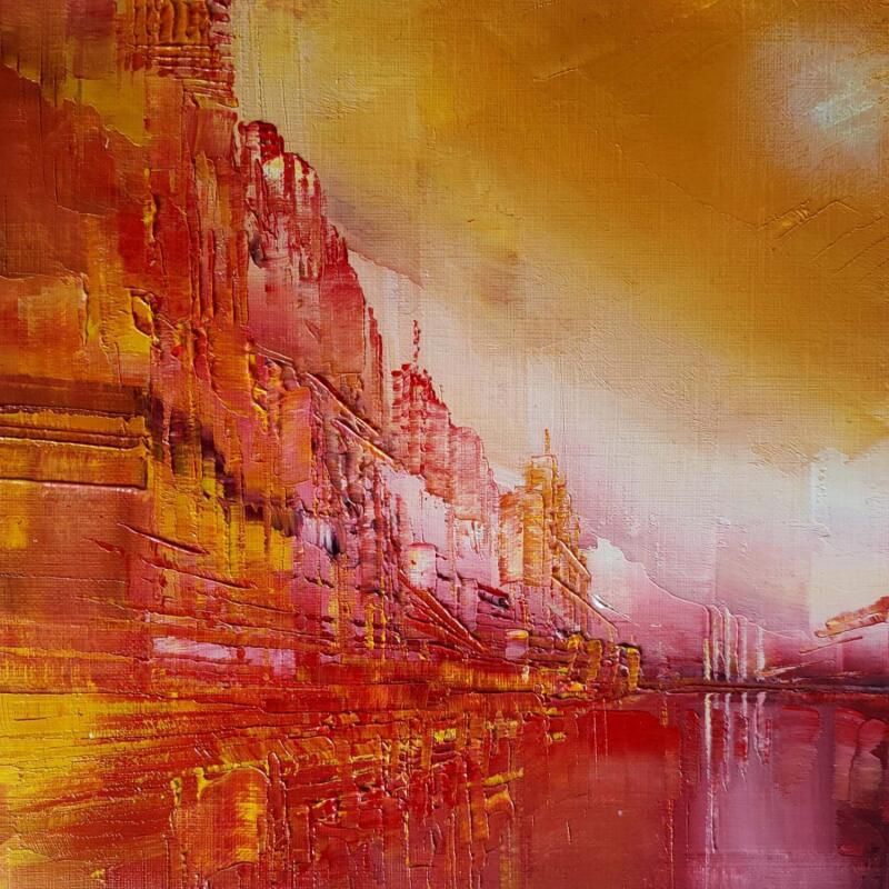 At the age of 12, during a visit to the Tate Gallery in London, Emmanuelle encountered the first paintings that made her want to paint. She decided to attend a fine arts workshop outside her regular school curriculum, and after receiving a high school diploma in the arts, she joined the School of Fine Arts. She studied drawing and preferred figurative painting initially. The light of the Brittany coast, always changing and capricious, was a source of inspiration and desires for her. After painting from nature and photos, she decided to give free rein to her imagination and to trust the colours as her only medium, and thus she moved definitively to abstraction. On a trip to Russia she met many passionate artists (musicians, actors, filmmakers), and on returning to France, she became a schoolteacher. The overwhelming artistic imagination of children taught her much and this experience helped her to affirm her own colours as her 'joie de vivre'. She then devoted herself entirely to painting.
