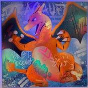 This unique and original contemporary artwork "DRACAUFEU" on the subject of Pop icons has been created by the contemporary artist Lemoine Mael.