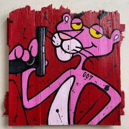 The artist used Acrylics to create this small-format Pop-art style painting on wood, on the theme of Pop Icons.