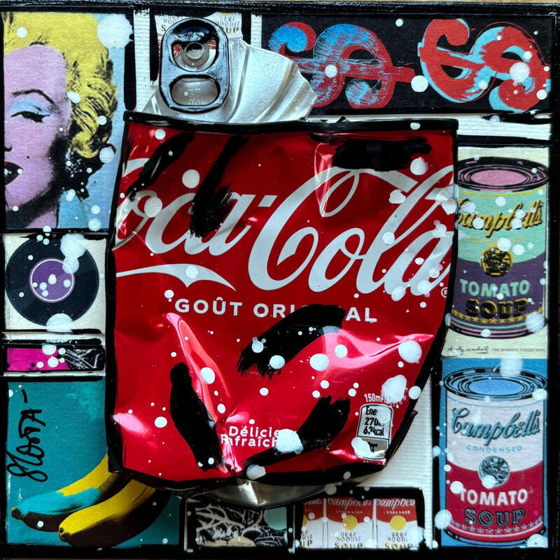 This unique and original contemporary artwork "POP COKE" on the subject of Pop icons has been created by the contemporary artist Costa Sophie.