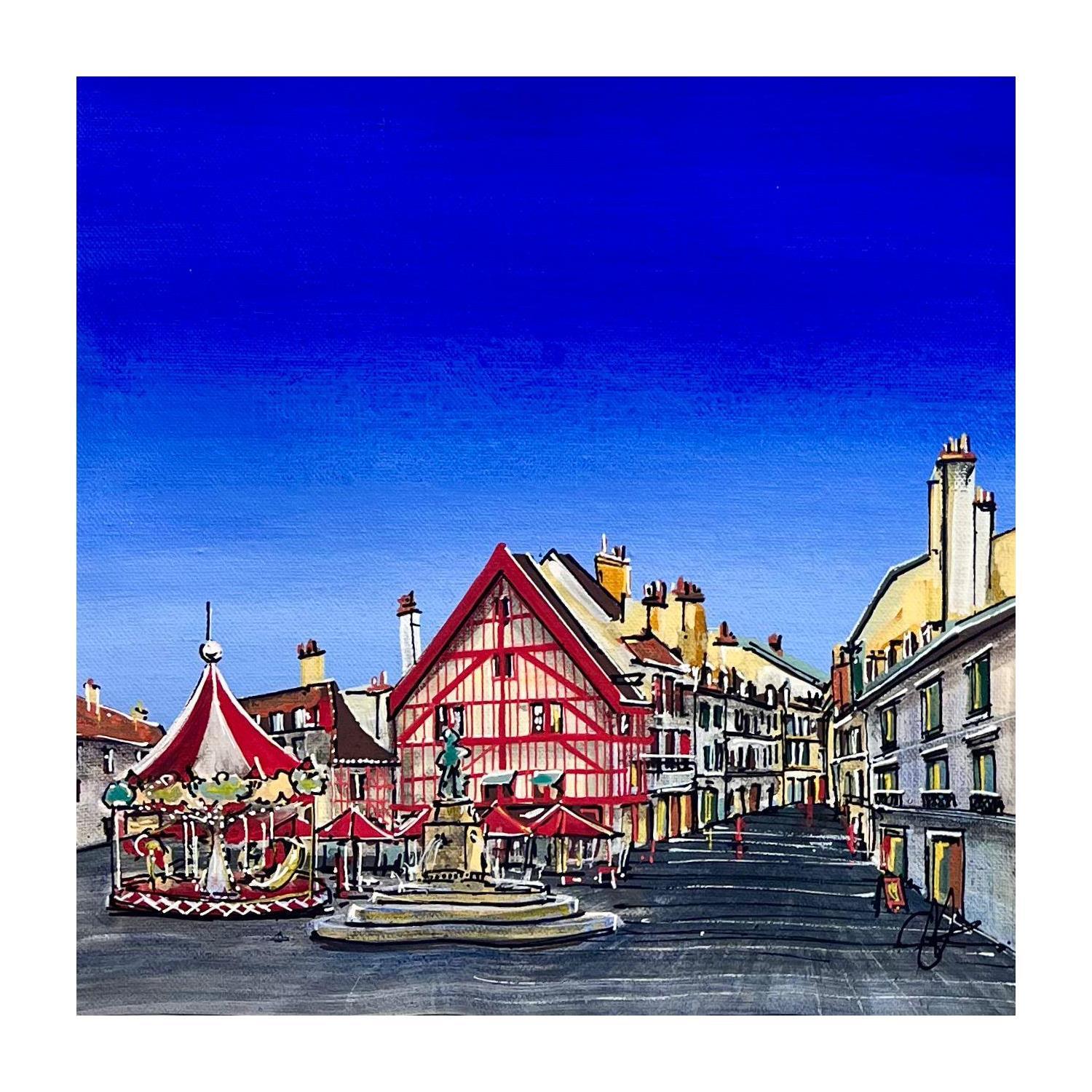 This unique and original contemporary artwork "Place François Rude à Dijon" on the subject of Still-life has been created by the contemporary artist Touras Sophie-Kim .